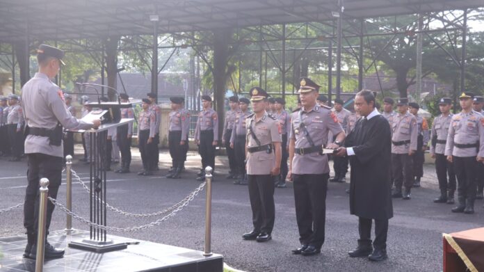 Rangkaian kegiatan ditutup dengan prosesi pelepasan Kapolres lama melalui tradisi pedang pora dan jajar kehormatan. Seluruh kegiatan berlangsung aman, tertib, dan kondusif.