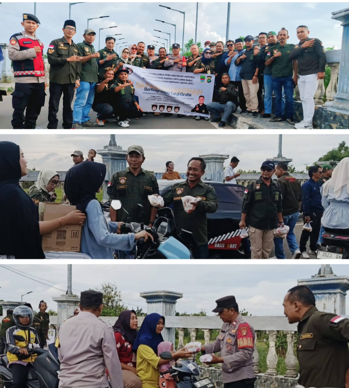 Ketua DPC AKPERSI Karawang, Feri Maulana, bersama jajarannya turut turun langsung ke jalan membagikan takjil kepada para pengendara yang melintas di Jembatan Merdeka.