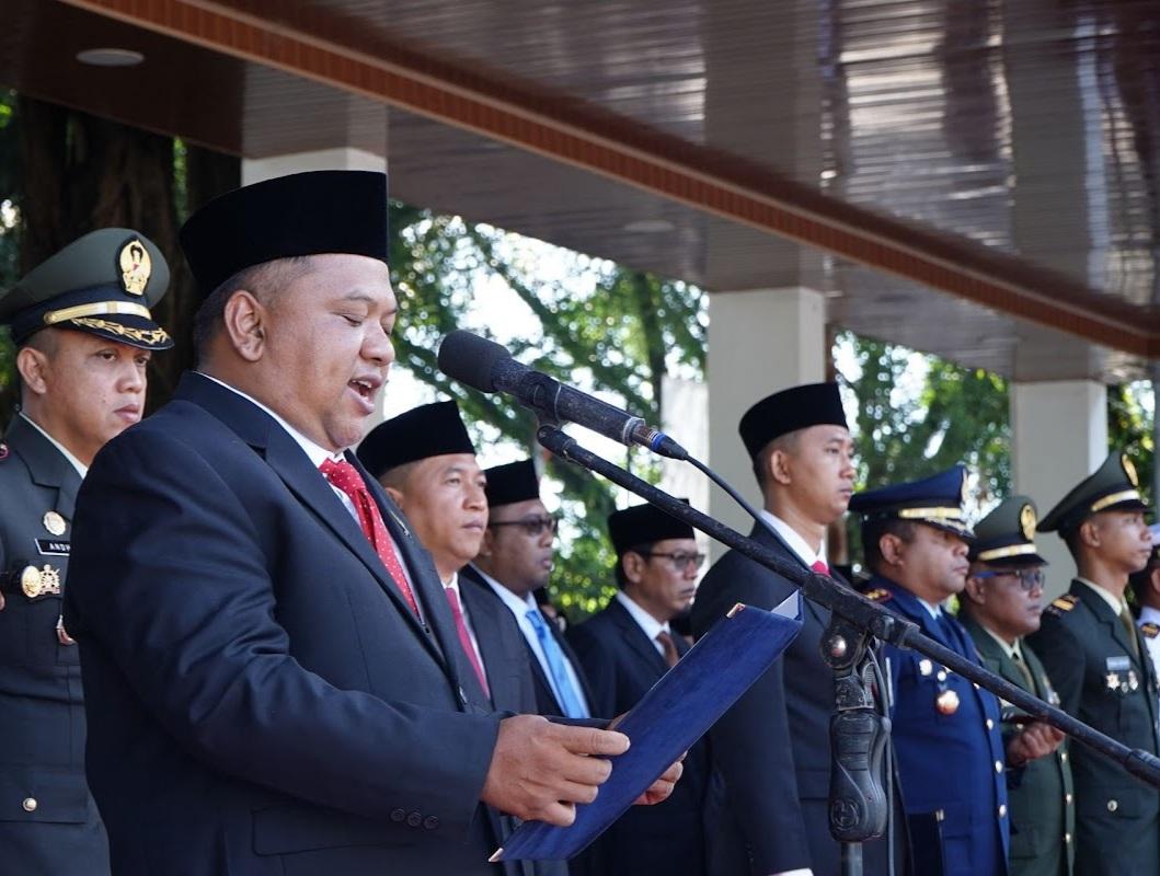 Bupati Sukabumi, H. Asep Japar, bukanya hanya sebagai inspektur upacara. Beliau membacakan teks Pancasila yang kemudian diucapkan ulang oleh seluruh peserta upacara.