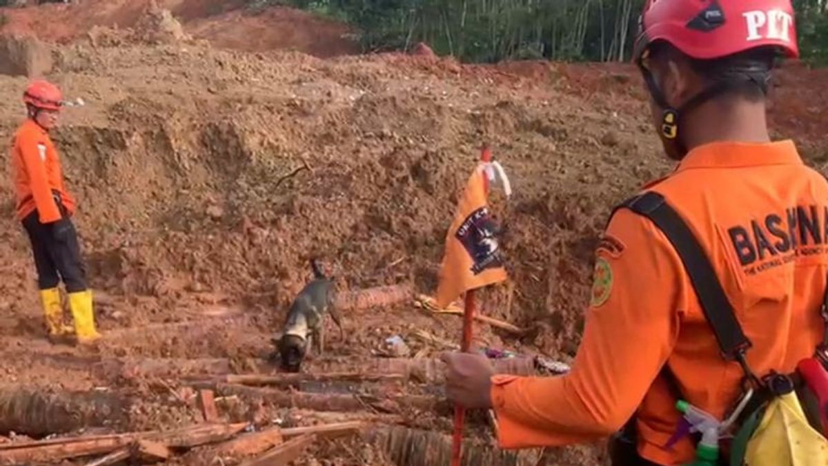 Tim Search and Rescue (SAR) gabungan mengerahkan sembilan anjing pelacak dan sembilan alat berat pada hari ketiga operasi pencarian korban tanah longsor di Desa Cibeunying, Kabupaten Cilacap, Jawa Tengah.
