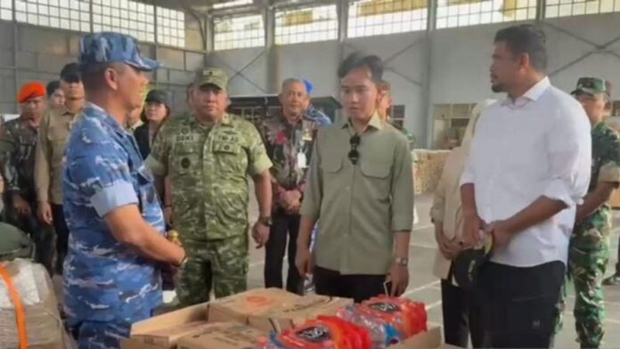 Dalam peninjauannya, Wapres melihat secara langsung kondisi penyimpanan berbagai pasokan bantuan yang dialokasikan bagi korban bencana banjir dan longsor di wilayah Sumatera tersebut.