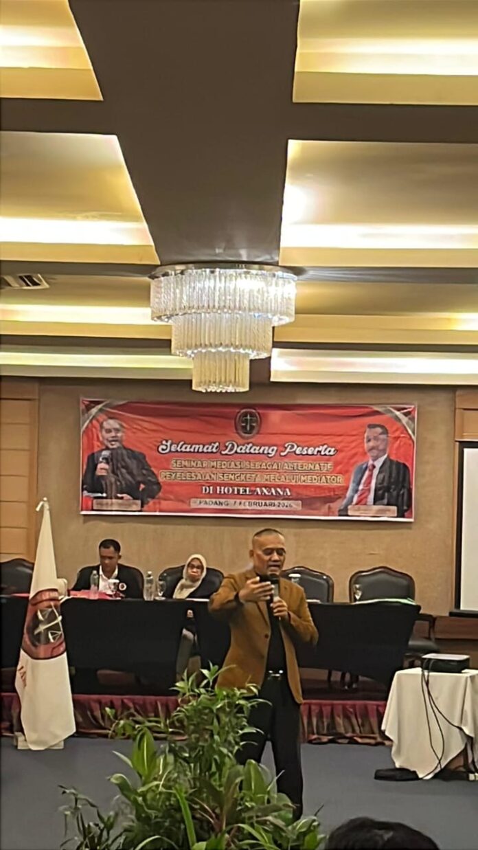 Direktur LBH Sidik Jari Adv. Azwar Siri. SH C. Med CPL Sebagai Nara sumber Seminar Mediasi Sebagai Alternatif Penyelesain Sengketa di Hotel Axana