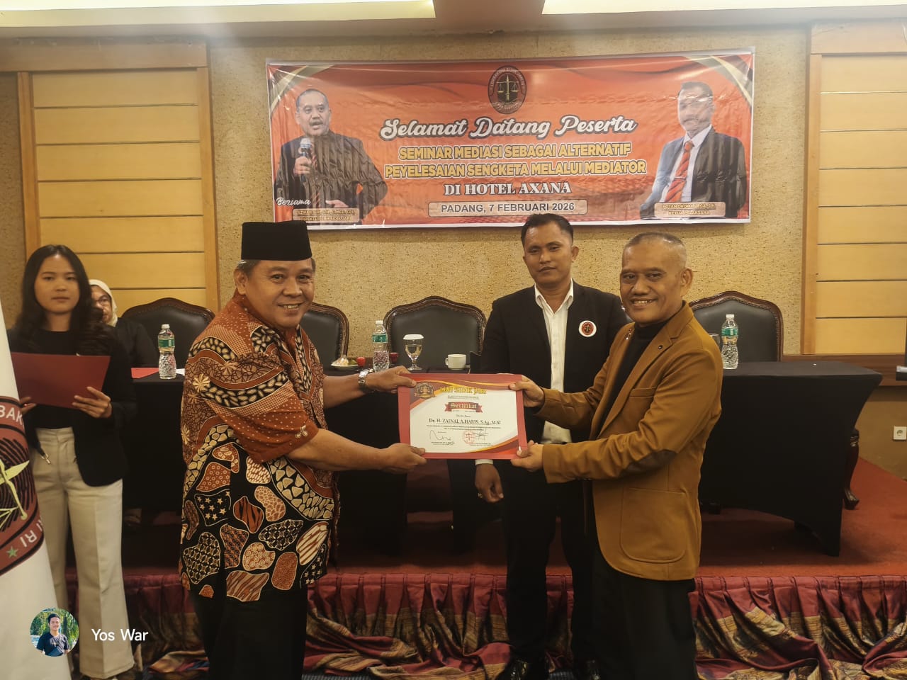 Seminar ini dikuti dari berbagai daerah dan berbagi latar belakang profesi di Hotel Axana Padang pada tanggal 7 Februari 2026 berlangsung Sukses diakiri dengan penyerahan sertifikat. (Addy DM)