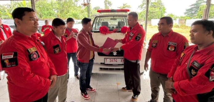 Organisasi Pemuda Batak Bersatu (DPC PBB) Subang menerima satu unit mobil baru untuk Ambulance dari warga Batak yang ada di Kabupaten Subang, Sabtu (7/3/2025).