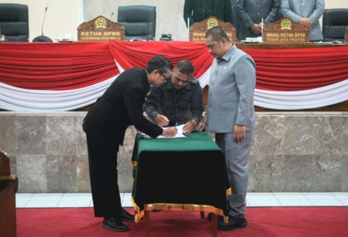 Dalam rapat tersebut dilakukan pula penandatanganan persetujuan Propemperda 2026.