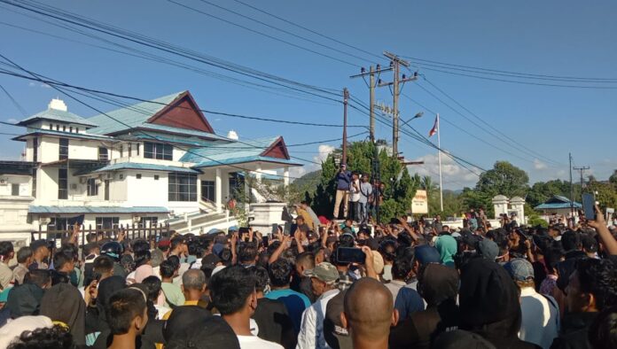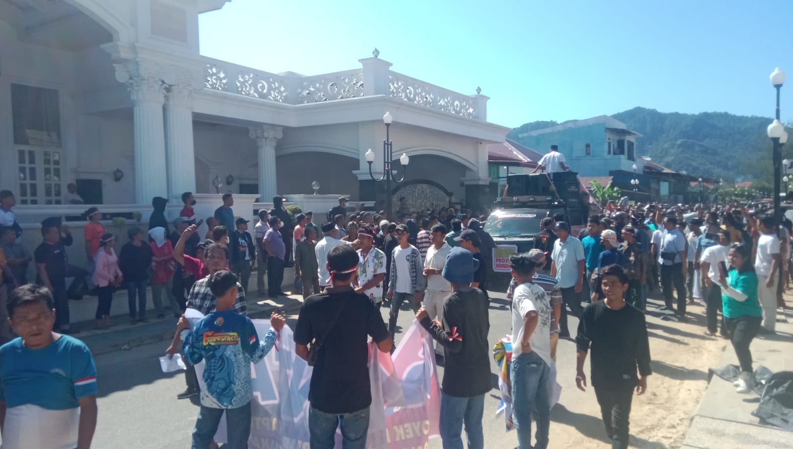 Ribuan massa melakukan aksi di depan Kantor DPRD Tapteng pada Jumat (31/10/2025) sore.