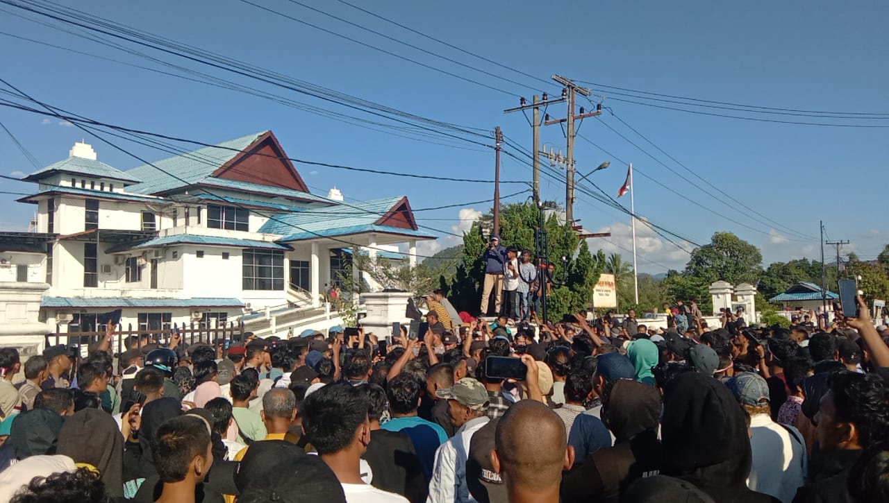 Sebelumnya, ratusan massa yang datang dari berbagai kecamatan di Tapteng, seperti Sosorgadong, Poriaha, dan Pandan, berkumpul untuk melakukan aksi demonstrasi di Kantor DPRD Tapteng.