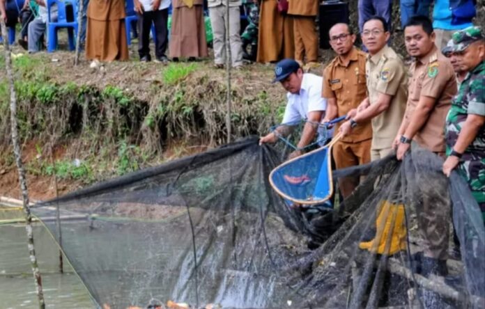 Bupati Tapanuli Selatan H. Gus Irawan Pasaribu, menghadiri acara panen ikan di Desa Pargarutan Julu, Kecamatan Angkola Timur, Kabupaten Tapsel, Senin (29/9/2025).