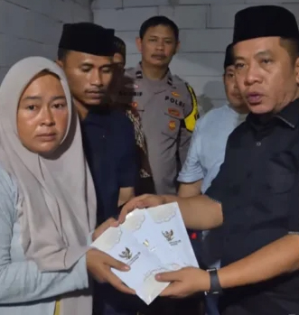 Dengan wajah penuh empati, ia menyampaikan belasungkawa sekaligus memberikan dukungan moril kepada keluarga korban.