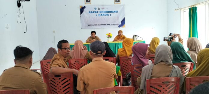 Koordinator Wilayah (Korwil) Dinas Pendidikan dan Kebudayaan (Disdikbud) Kecamatan Tarowang, Kabupaten Jeneponto, Sulsel, menggelar rapat koordinasi terhadap para kepala sekolah dengan tema “Kegiatan pesantren kilat harus dimaksimalkan serta mengajak muridnya untuk bersekah kepada korban kebakaran”.