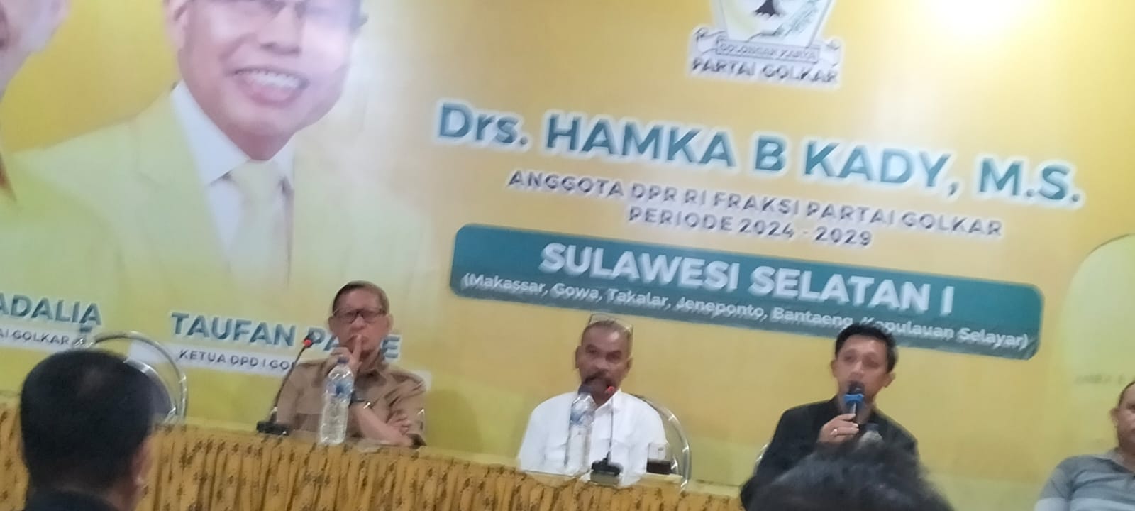 Anggota DPR RI dari Komisi V Dapil 1 Sulawesi Selatan Fraksi Partai Golkar periode 2024-2029, Drs Hamka B Kady M.S meluangkan waktunya untuk mengadakan pertemuan sekaligus silaturahmi dengan para tim mulai dari koordinator dusun/lingkungan, koordinator kecamatan dan koordinator kabupaten di Jalan Boulevar Kota Makassar pada Sabtu (8/11/2025).