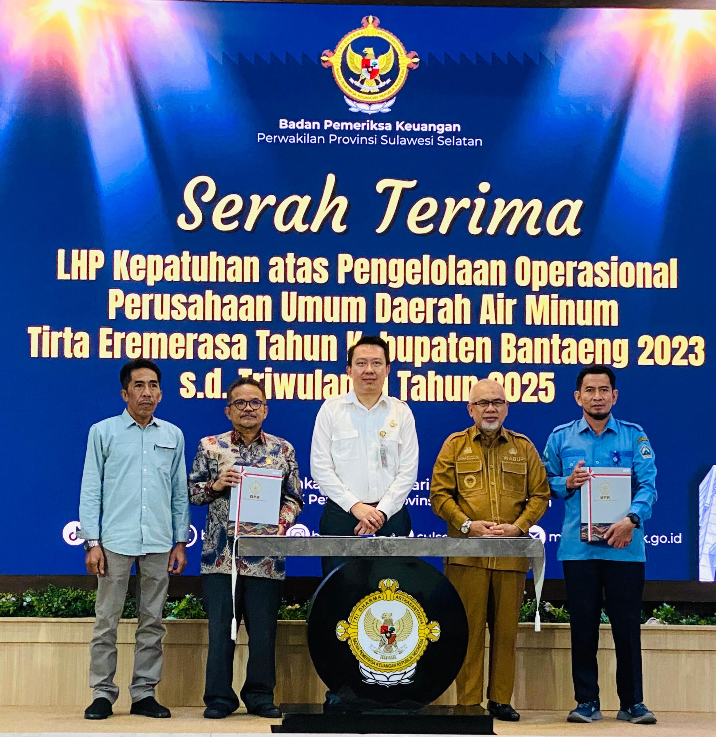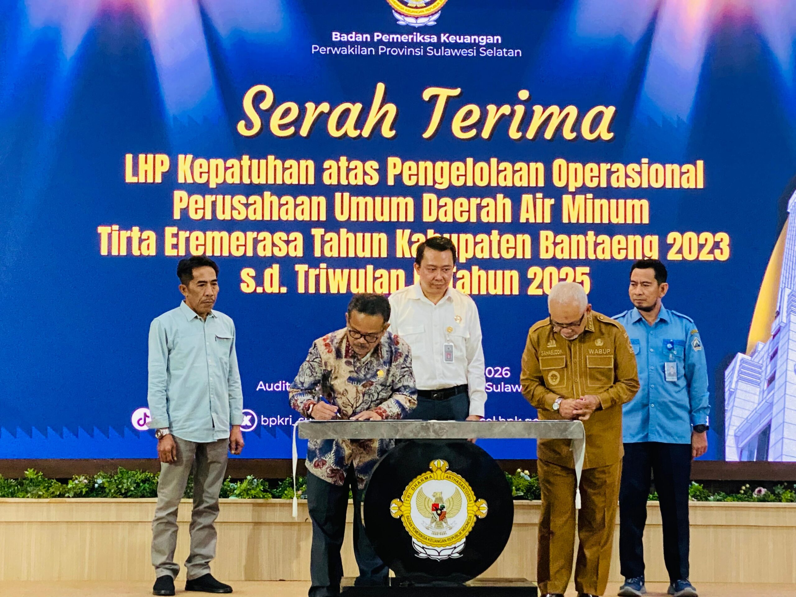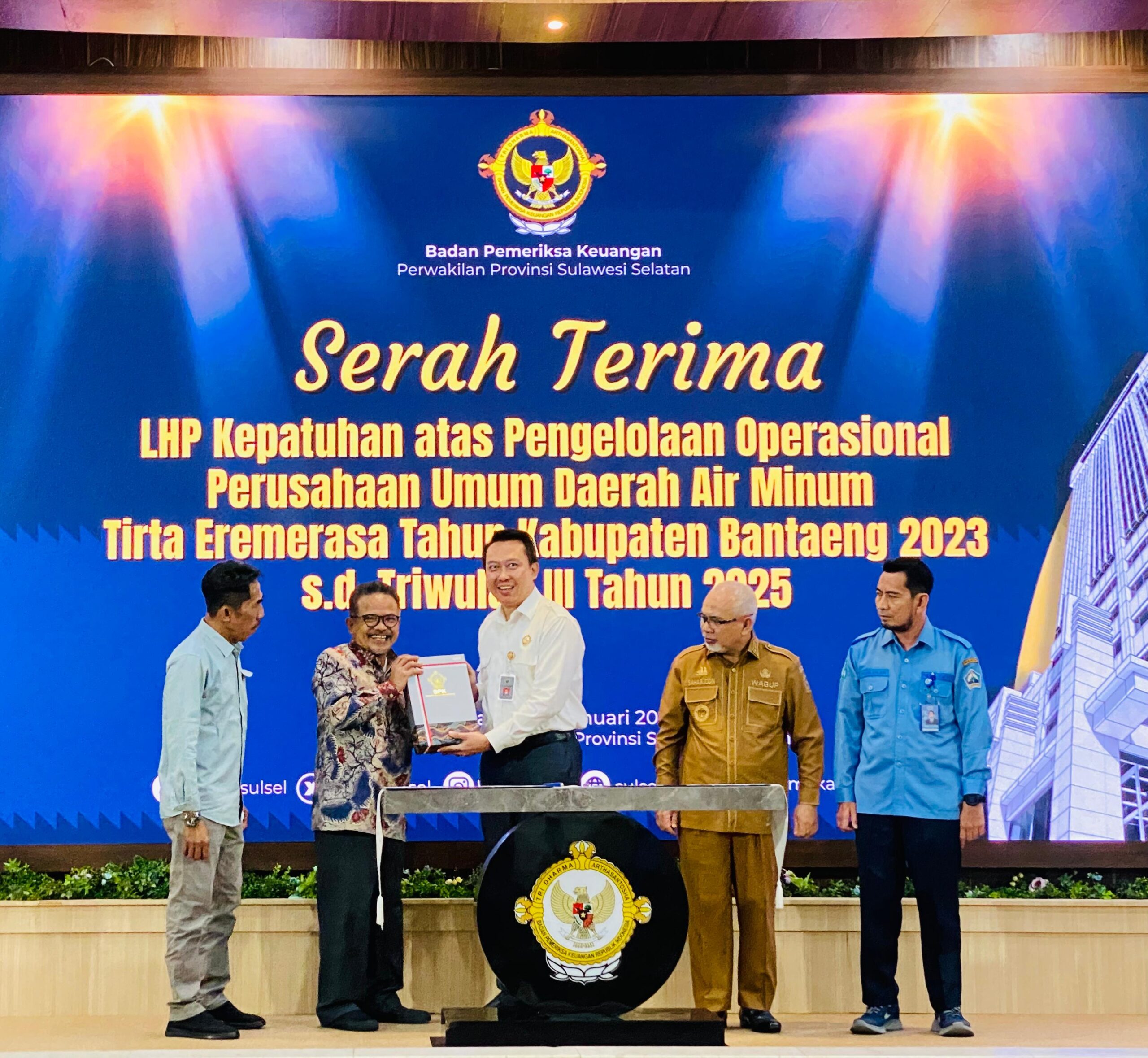 Ketua DPRD Bantaeng, H. Budi Santoso menghadiri penyerahan Laporan Hasil Pemeriksaan (LHP) Badan Pemeriksa Keuangan (BPK) perwakilan Sulsel di Kantor BPKP Sulsel, di Jalan AP Pettarani, Makassar, Senin, 19 Januari 2026. LHP tersebut diserahkan langsung oleh Kepala BPKP Sulsel, Winner Franky Halomoan Manalu.