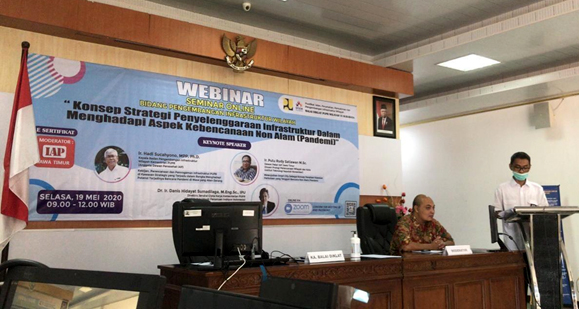 Kementerian Pekerjaan Umum dan Perumahan Rakyat (PUPR) terus berupaya mendukung penanganan Pandemi COVID-19. Selain dengan membangun fasilitas observasi/karantina dan rumah sakit rujukan COVID-19, bentuk dukungan juga dilakukan dengan penataan kawasan kumuh perkotaan. Guna mendukung penanggulangan pandemi serta memenuhi mitigasi dan manajemen resiko bencana non-alam berbasis pengembangan wilayah, Kementerian PUPR melalui Badan Pengembangan Sumber Daya Manusia (BPSDM) menggelar webinar Disaster Pandemic Aspect in Infrastructure Strategic Concept yang diikuti 192 peserta pada Selasa (19/5/2020).