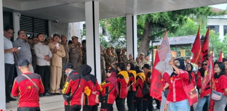 Kehadiran para wakil rakyat itu disambut antusias oleh peserta aksi yang sejak awal berharap aspirasi mereka didengar langsung oleh pihak legislatif. (Abdulah)
