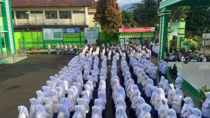Madrasah Aliyah Negeri (MAN-2) Kota Sukabumi menggelar upacara pembinaan kedisiplinan karakter siswa dan koordinasi strategis antara bidang kesiswaan dan wali kelas, kegiatan dilaksanakan Lapangan dan Aula MAN 2, Jl. Palasari No 14, Kelurahan. Sukakarya, Kecamatan Warudoyong, Kota Sukabumi, Senin (19/1/2026).