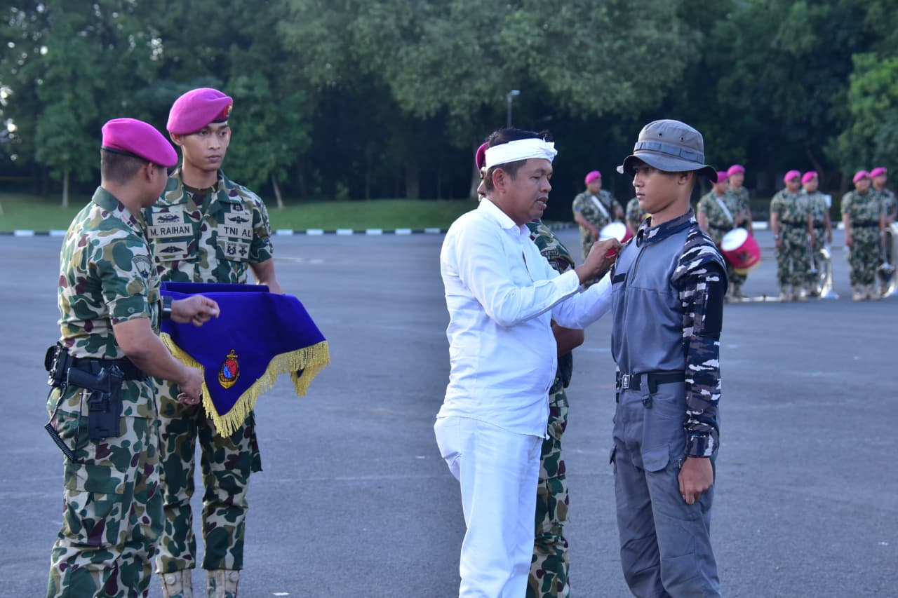 Panglima Korps Marinir (Pangkormar) Letnan Jenderal TNI (Mar) Dr. Endi Supardi, S.E., M.M., M.Tr.Opsla., CHRMP., CRMP., bersama Gubernur Jawa Barat Kang Dedi Mulyadi (KDM) menutup Pendidikan Karakter Garda Panca Waluya Jawa Barat Istimewa Batch VI bagi 151 siswa di Lapangan Apel Brigif 1 Marinir, Kesatrian Marinir Hartono Cilandak, Jakarta Selatan, Jumat (07/11/2025).