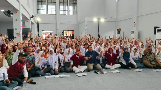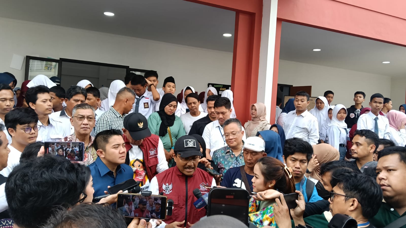 Teddy Indra Wijaya Selaku Sekretaris Kabinet Presiden Prabowo Subianto, takjub oleh kondisi sekolah yang ramai dikunjungi siswa pada hari Minggu.
