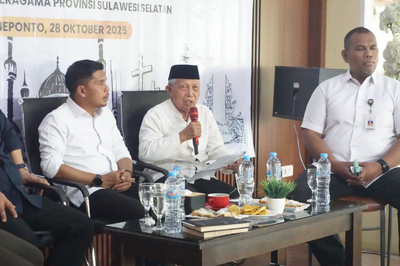 Dalam sambutannya, Ketua FKUB Sulawesi Selatan, Prof. Dr. K.H. Muammar, menyampaikan rasa syukur dan apresiasi atas dukungan seluruh pihak yang terus berkolaborasi dalam menjaga kerukunan di daerah.