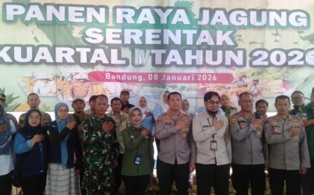 Kapolresta Bandung Kombes Pol Aldi Subartono menyampaikan bahwa panen raya jagung serentak ini merupakan bentuk komitmen bersama dalam menjaga ketahanan pangan sekaligus mendorong pertumbuhan ekonomi masyarakat, khususnya para petani.