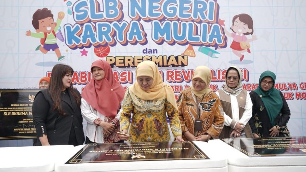 Gubernur Jawa Timur Khofifah Indar Parawansa meresmikan Sekolah Luar Biasa B (SLB-B) Karya Mulia Surabaya sebagai SLB negeri pertama di Jatim untuk memperkuat akses pendidikan bagi penyandang disabilitas tunarungu.