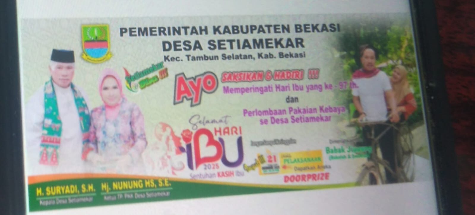 H. Suryadi,SH, Kepala Desa, Setiamekar Tambun Selatan sang suami dari Hj. HS, SE, anggota dewan dari Partai PPP itu, ketika dikonfirmasi, Senin (15/12/2025) di ruang kerjanya, ia mengatakan motivasi penyelenggaraan lomba berpakaian kebaya yang diikuti peserta berjumlah 4.000 orang itu, tepatnya di Hari Ibu ke-97 tahun itu, adalah kebinnekaan tunggal ika.