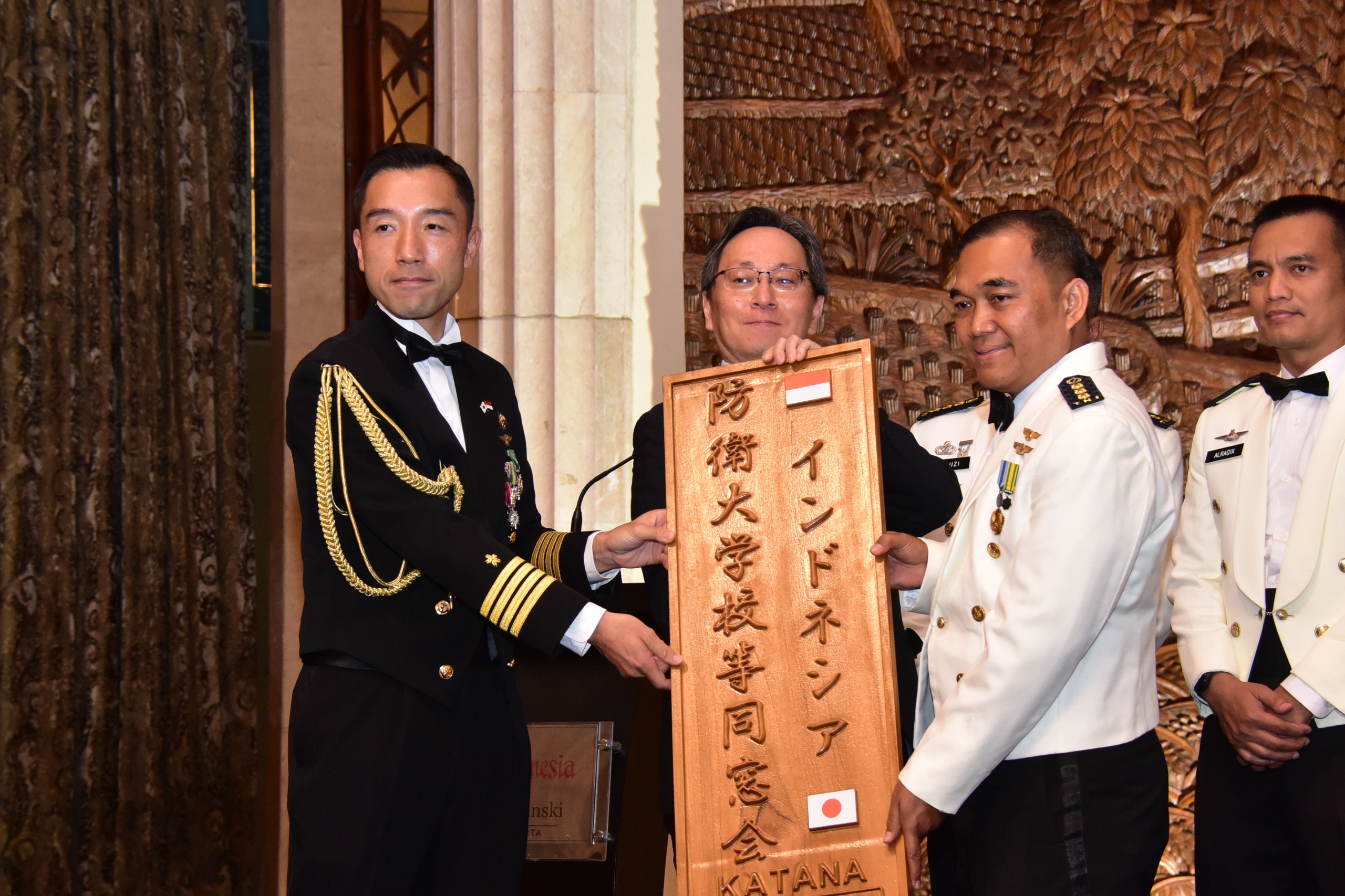 Acara resepsi juga diisi dengan penyerahan papan nama organisasi alumni studi TNI JSDF “KATANA”, ucapan bersulang (toast), serta jamuan makan malam bersama yang berlangsung dalam suasana akrab dan penuh kehangatan. Kegiatan berjalan aman, tertib, dan lancar, mencerminkan eratnya hubungan persahabatan dan kerja sama antara TNI dan Japan Self Defence Force dalam membangun kawasan Indo-Pasifik yang damai, stabil, dan tangguh. (Reny)