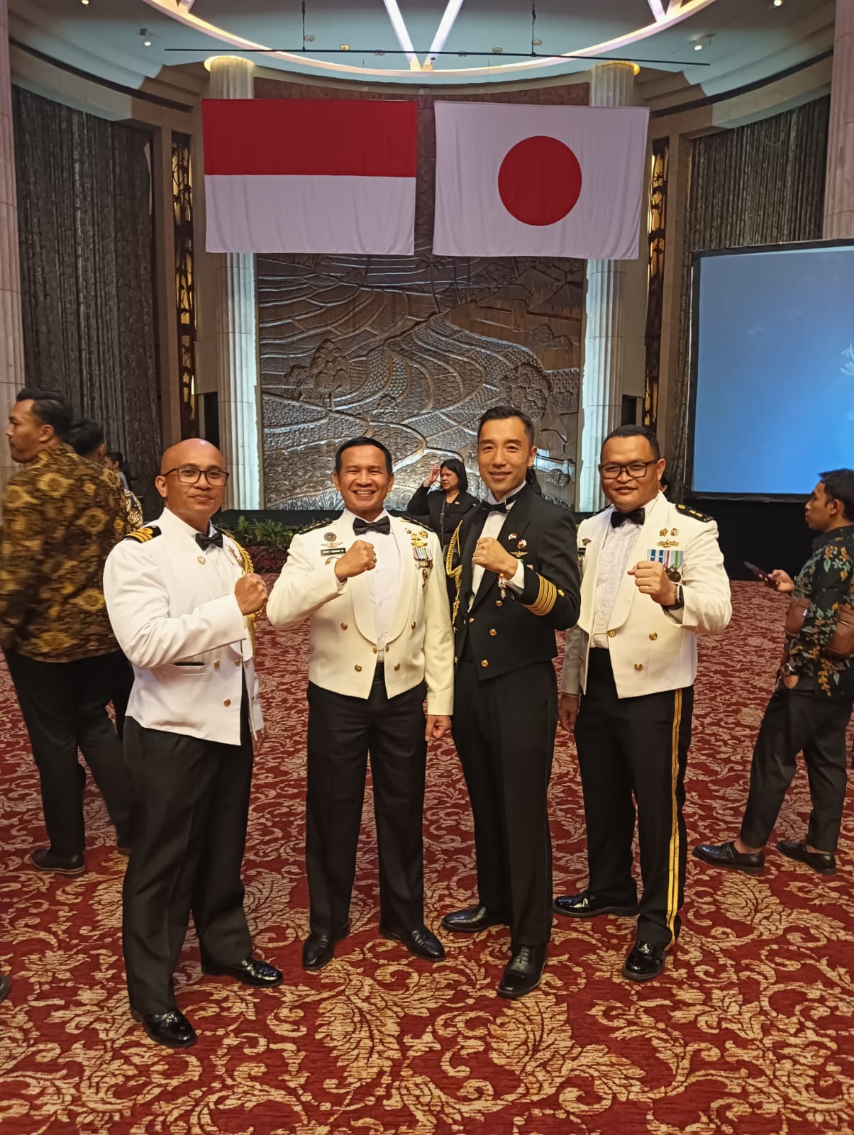 Acara resepsi juga diisi dengan penyerahan papan nama organisasi alumni studi TNI JSDF “KATANA”, ucapan bersulang (toast), serta jamuan makan malam bersama yang berlangsung dalam suasana akrab dan penuh kehangatan. Kegiatan berjalan aman, tertib, dan lancar, mencerminkan eratnya hubungan persahabatan dan kerja sama antara TNI dan Japan Self Defence Force dalam membangun kawasan Indo-Pasifik yang damai, stabil, dan tangguh. (Reny)