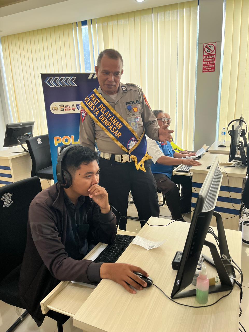 Dalam rangka memberikan pelayanan prima yang humanis, profesional, dan transparan kepada masyarakat, petugas Satuan Penyelenggara Administrasi SIM (Satpas SIM) Polresta Denpasar memberikan pelayanan sekaligus arahan kepada para pemohon SIM yang tengah menjalani proses pendataan hingga pelaksanaan ujian teori.