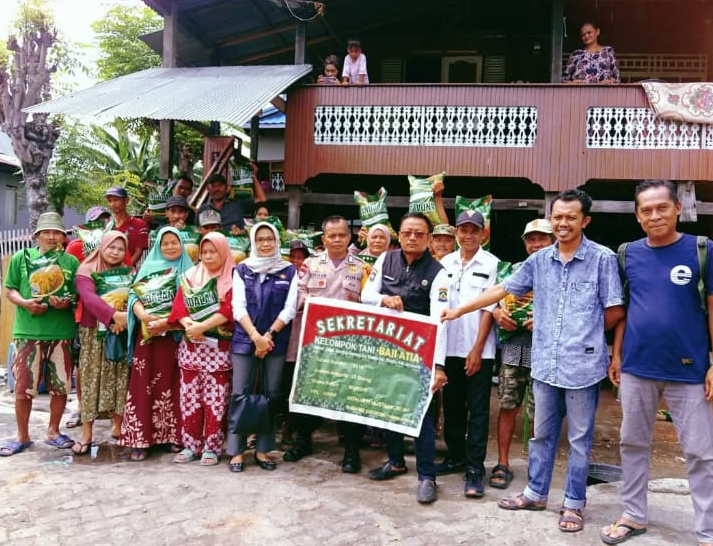 Ketua Kelompok Tani Mawar dan Baji Atia serahkan bantuan benih padi secara simbolis terhadap puluhan pengurus anggota kelompok tani yang disaksikan oleh PPL, Lurah dan Bhabinkamtibmas Kelurahan Bontoa.