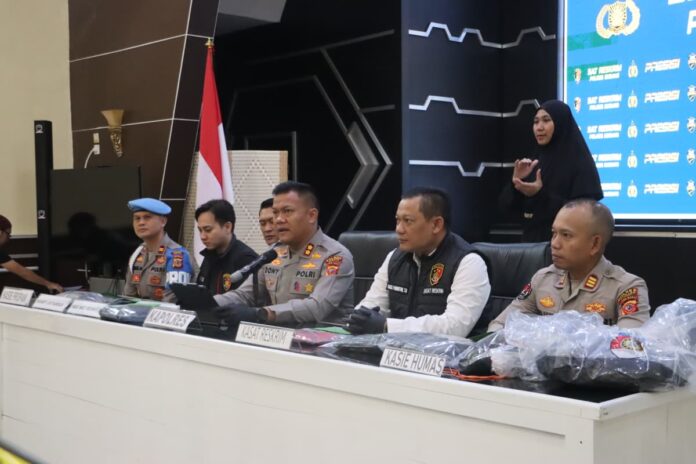 Dalam konferensi pers tersebut, turut disampaikan sejumlah barang bukti yang berhasil diamankan, di antaranya satu unit sepeda motor Honda Beat warna hitam milik pelaku, satu unit sepeda motor Honda Scoopy warna putih milik korban, pakaian milik pelaku, satu pasang sepatu milik korban, satu buah jaket jeans milik korban, satu buah celana milik korban , satu buah baju milik korban serta satu unit handphone milik pelaku. Sementara senjata tajam jenis golok, tas, dan handphone milik korban masih dalam pencarian.