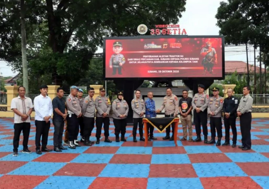 Dalam kegiatan tersebut dilakukan penyerahan alsintan secara simbolis dari Dinas Pertanian Kabupaten Subang kepada Polres Subang, yang kemudian diserahkan langsung oleh Wakapolres Subang kepada Ketua Kelompok Tani sebagai bentuk dukungan Polri terhadap peningkatan produktivitas pertanian di wilayah Kabupaten Subang.