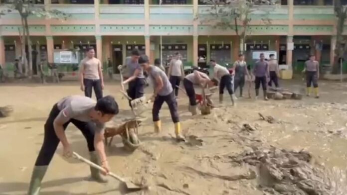 Kepolisian Negara Republik Indonesia (Polri) menunjukkan komitmennya dalam pemulihan pascabencana dengan membantu pembersihan fasilitas pendidikan yang terdampak banjir di Kabupaten Aceh Tamiang, Aceh.