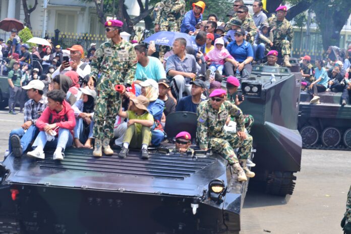 Kehadiran prajurit Baret Ungu di tengah masyarakat menambah semarak dan kehangatan suasana peringatan HUT ke-80 TNI yang dipimpin langsung oleh Bapak Presiden Prabowo Subianto. Warga tampak antusias berswafoto bersama prajurit Marinir yang tetap bersikap ramah meski mengenakan perlengkapan tempur lengkap. Anak-anak hingga orang tua tampak bergembira bisa melihat langsung kekuatan pertahanan laut Indonesia yang selama ini hanya disaksikan melalui layar kaca.