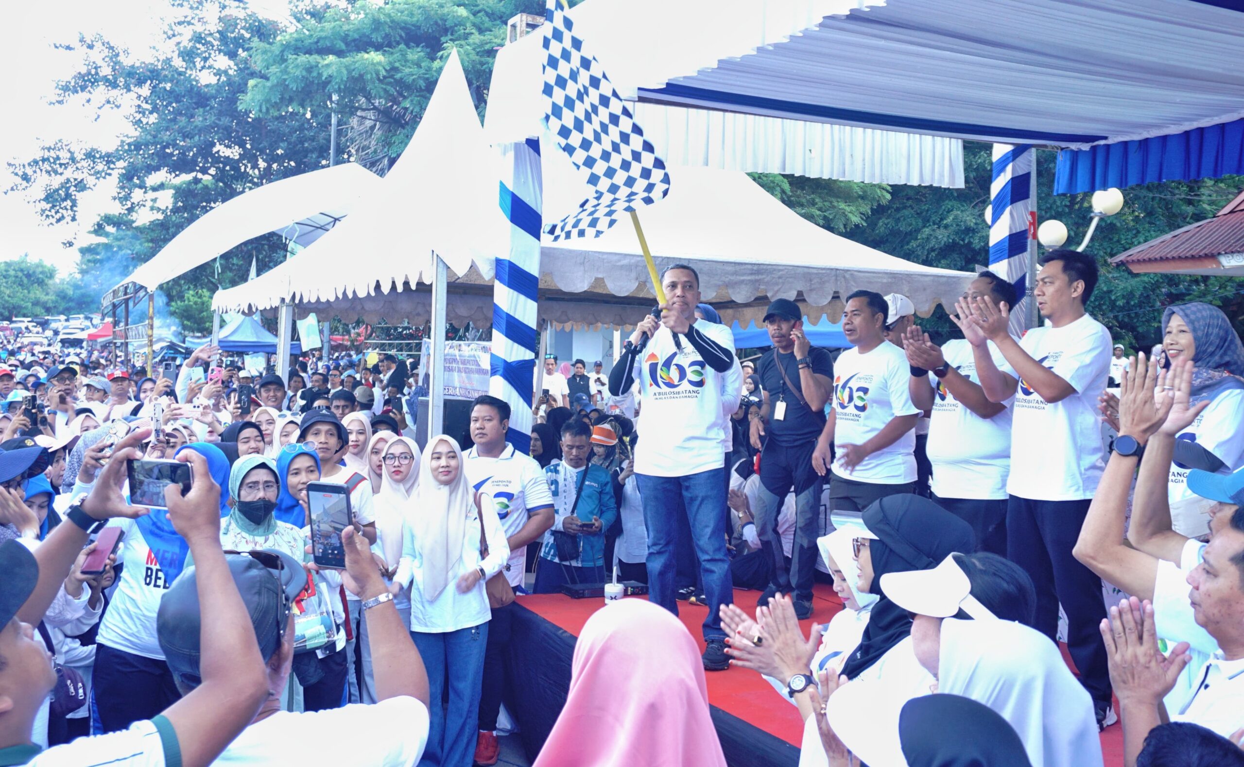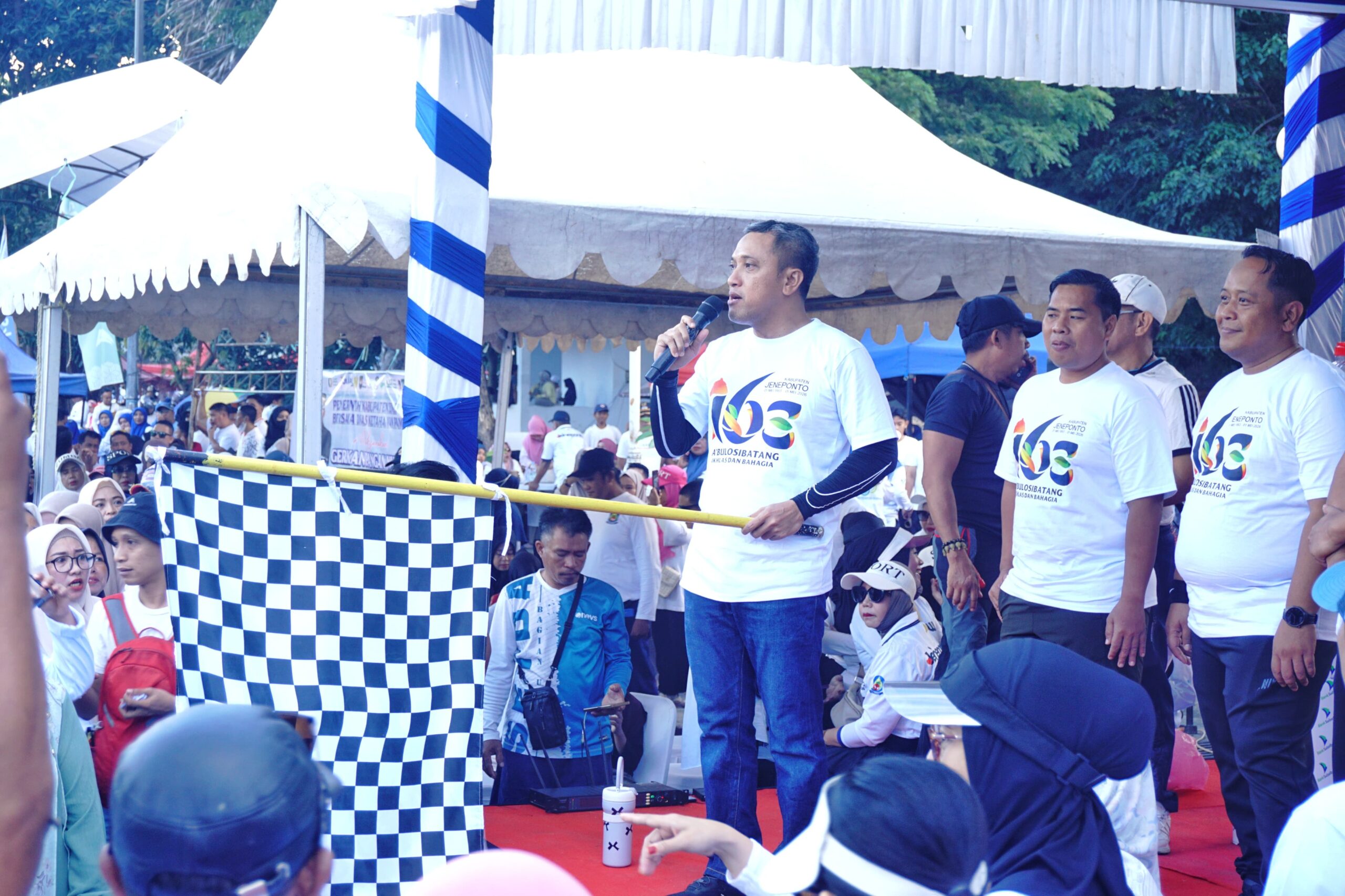 Ribuan masyarakat Kabupaten Jeneponto memadati kawasan Taman Turatea untuk mengikuti kegiatan Jalan Santai Bahagia (JSB) dalam rangka memeriahkan Hari Jadi Kabupaten Jeneponto ke-163. Minggu, 26 April 2026.