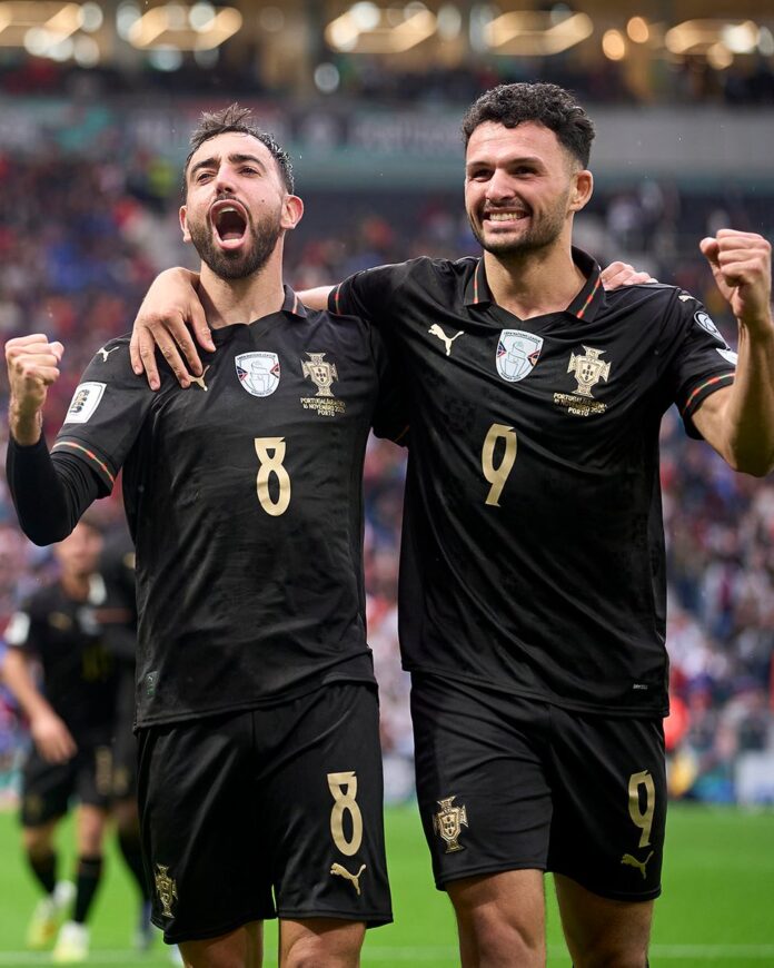 Fernandes mencetak hattrick dan dua dari gol itu tercipta lewat titik penalti. Sukses Fernandes disamai pemain Paris Saint Germain Joao Neves yang juga membuat tiga gol sekaligus membawa Portugal menjadi juara grup dengan mengantungi poin 18.