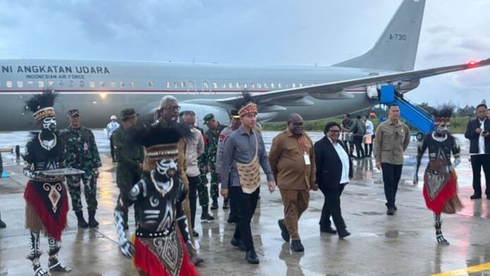 Dalam kunjungan tersebut, Wapres Gibran didampingi antara lain Menteri Koordinator Bidang Politik dan Keamanan Djamari Chaniago, Wakil Menteri Dalam Negeri Ribka Haluk, Gubernur Papua Tengah Meki Nawipa, Wakil Bupati Mimika Emanuel Kemong, Kepala Dinas Pendidikan Mimika Cahyono, dan Kepala SMAN 5 Sentra Pendidikan Martius Wenda. (Jose)