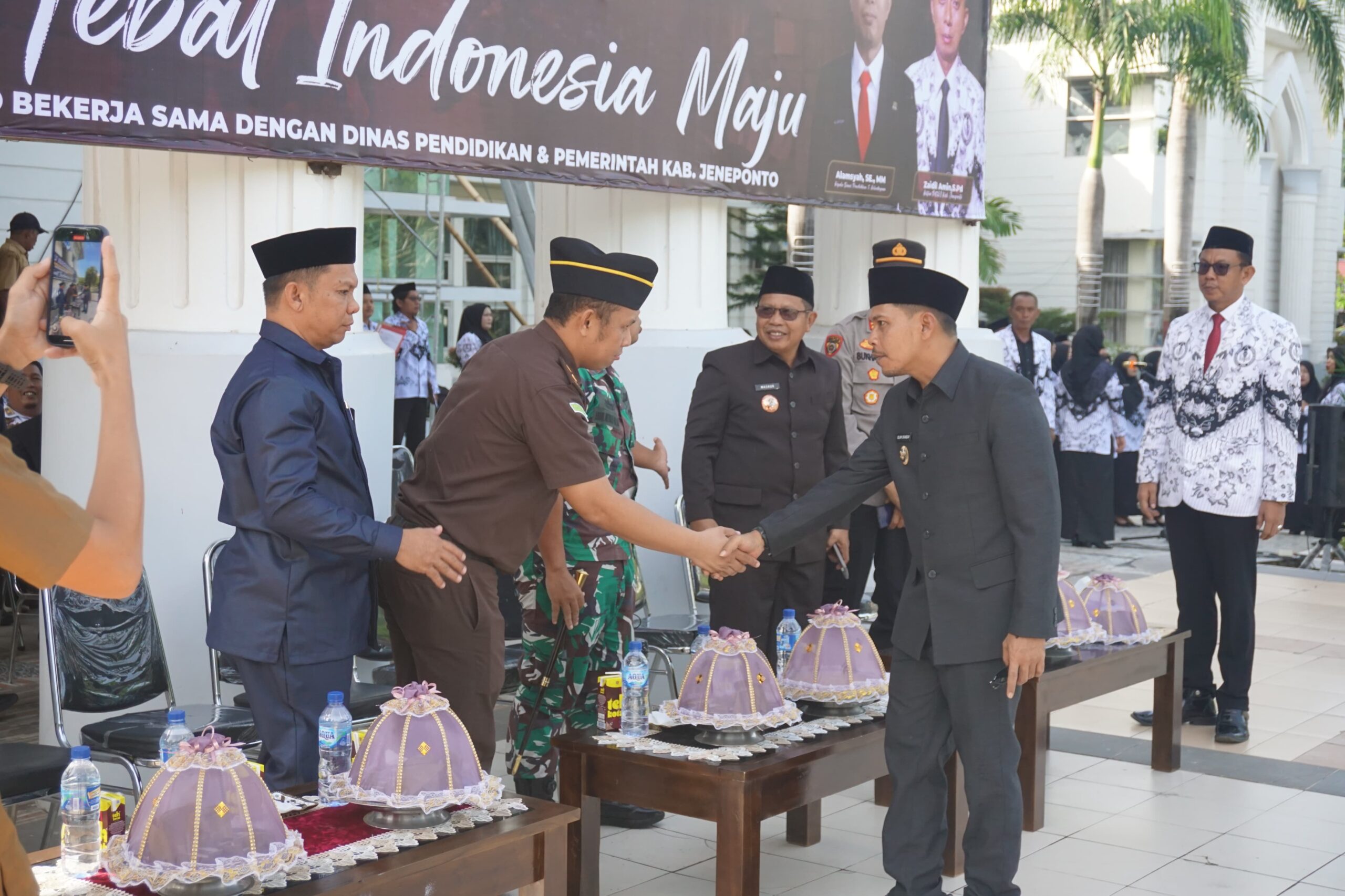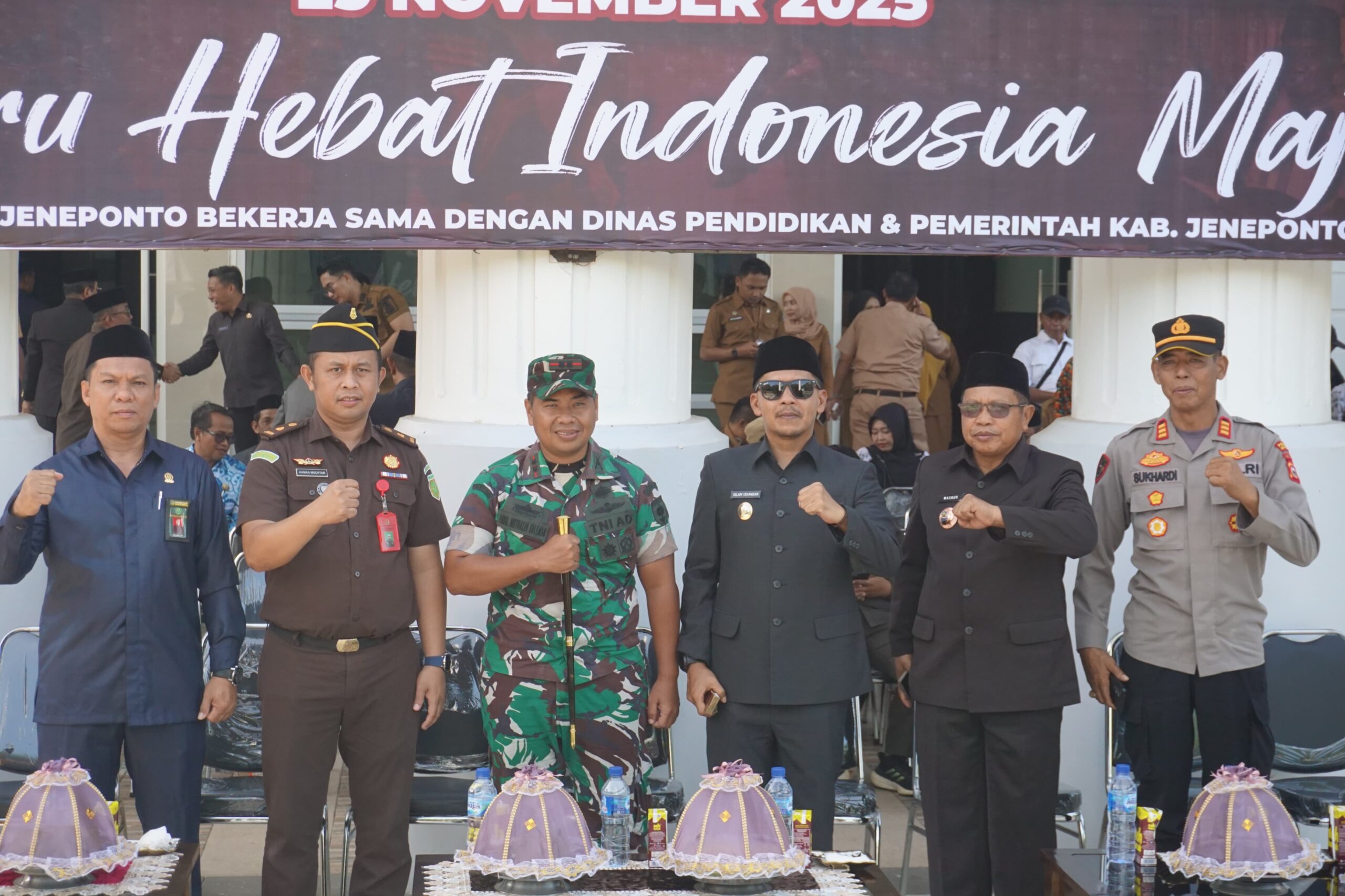 “Peranan guru tidak pernah tergantikan. Melalui keteladanan, keikhlasan, dan profesionalisme, para guru telah menjadi cahaya bagi masa depan anak-anak kita. Dengan semangat ‘Guru Hebat, Indonesia Maju’, mari kita terus berkomitmen meningkatkan kualitas pendidikan di Kabupaten Jeneponto,” ujarnya.