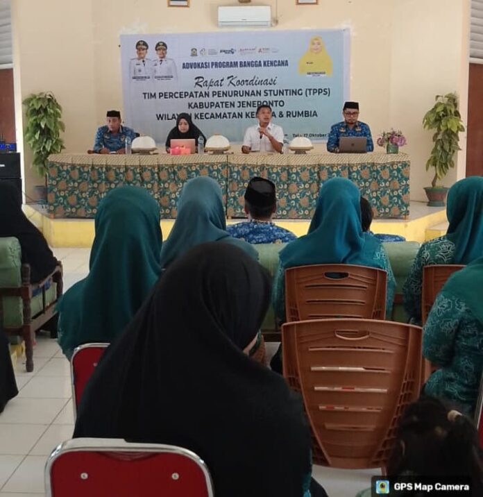 Wakil Bupati Jeneponto, Islam Iskandar selaku Ketua Tim Percepatan Penurunan Stunting (TPPS) Kabupaten, memimpin Rapat Koordinasi (Rakor) TPPS tingkat Kecamatan Kelara dan Rumbia. Kegiatan ini bertujuan memperkuat koordinasi dan komitmen seluruh pemangku kepentingan dalam mencapai target penurunan angka stunting di Jeneponto.