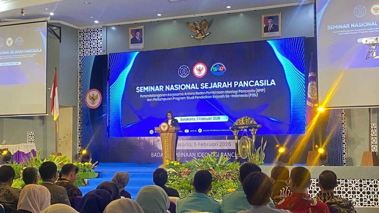 “Sejarah Pancasila bukan hanya dongeng masa lalu yang sudah usang, melainkan narasi hidup tentang pergulatan pemikiran, dialektika ideologis, dan konteks sosial politik yang melahirkan kristalisasi nilai-nilai luhur bangsa,” ujar Astrid Widayani dalam Seminar Nasional Sejarah Pancasila di FKIP Univeristas Sebelas Maret (UNS) Surakarta, Kamis (5/2/2026).