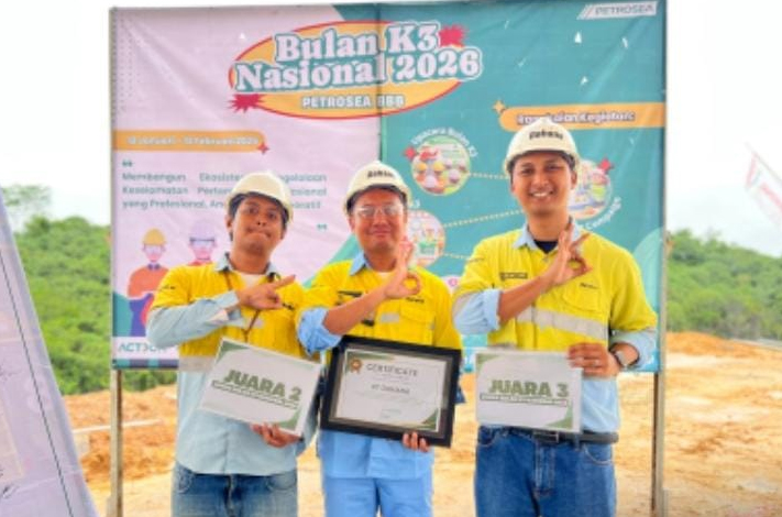 PT Dahana meraih penghargaan Zero LTI Working Partner Petrosea Jobsite Project BBB pada Upacara Penutupan Bulan Keselamatan dan Kesehatan Kerja Nasional (BK3N) di Jobsite Project Petrosea BBB yang dilaksanakan di Lapangan Office Petrosea BBB (21/2/ 2026).